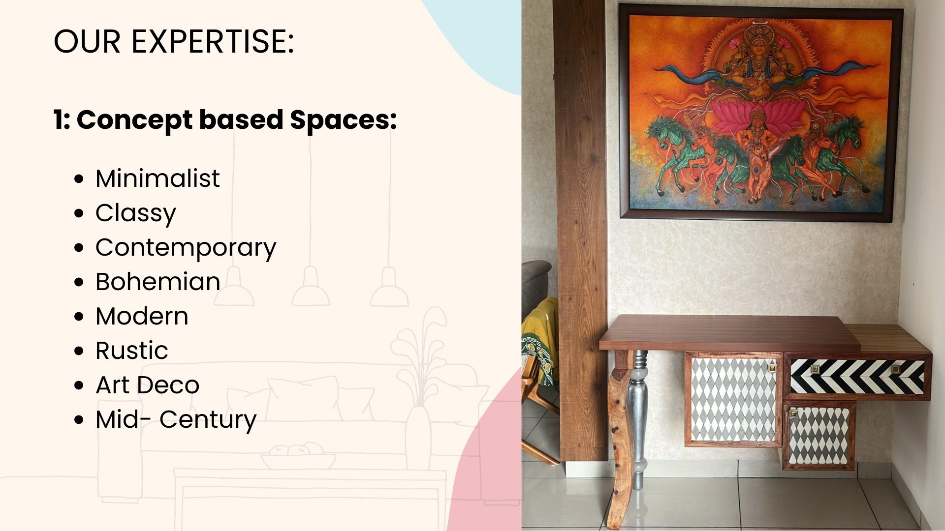 We believe every space tells a story. With our exclusive range of mosaic art, statement wall murals, and timeless furniture, we bring artistry and elegance into your home.