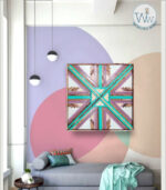 A soothing and sophisticated work of art, the Pastel Puzzle Wooden Mosaic Art showcases a geometric design that blends soft, calming shades of pastel colors into a harmonious, puzzle-like composition.