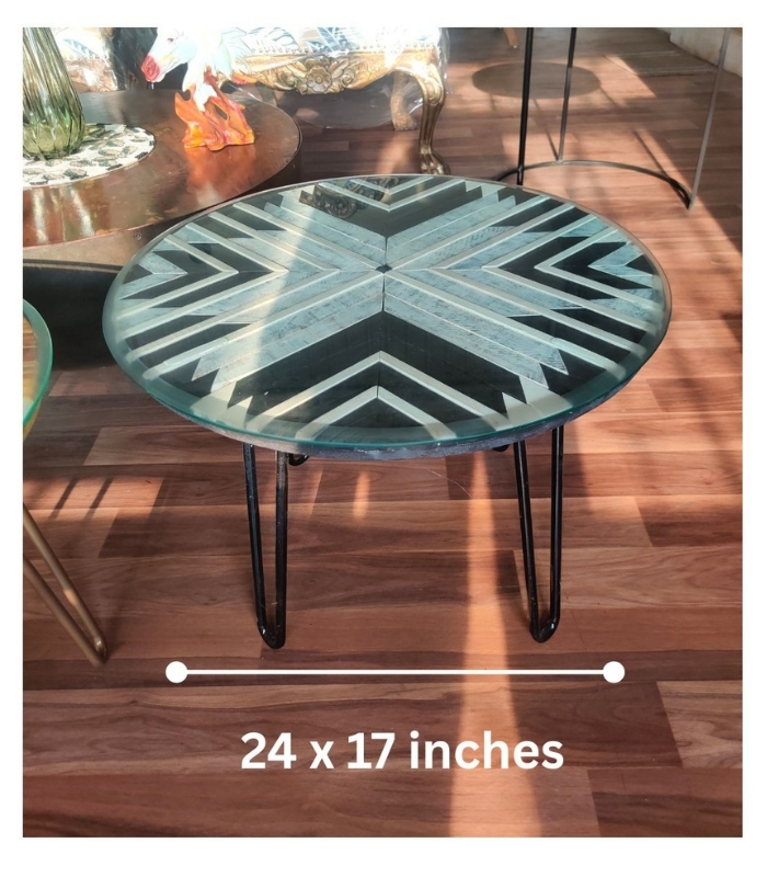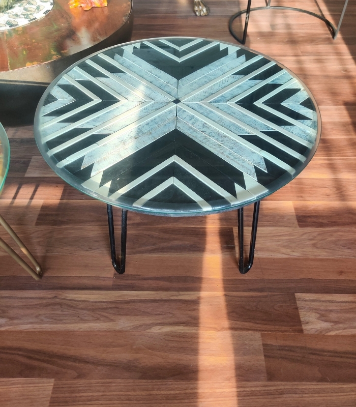 Elevate your décor with the timeless elegance of The Black & White Mosaic Table, a striking statement.Topped with a clear glass surface, the intricate mosaic design is beautifully showcased while offering durability and easy maintenance. The tabletop rests on a sturdy wooden frame, combining natural warmth with sleek style.