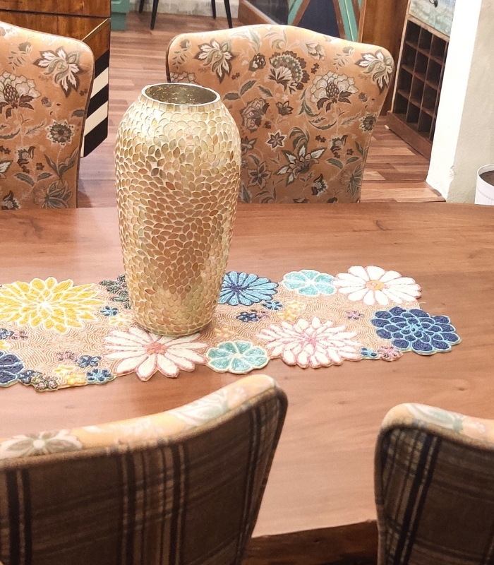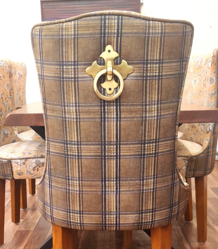Step into timeless elegance with the Vintage Dining Set, an exquisite collection that blends rustic charm with classic beauty. The centerpiece is a stunning wood log table, showcasing the natural grain and texture of the wood.Complementing the table are chairs adorned with a classic floral design, bringing a touch of nature indoors. The intricate floral upholstery, in rich, earthy tones.Perfect for traditional, farmhouse, or rustic interiors, the Vintage Dining Set is a true statement of craftsmanship and timeless elegance.